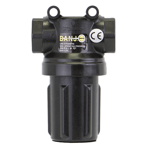 1/2" 50 Mesh Polypropylene Mini "T" Strainer with Black Bowl.