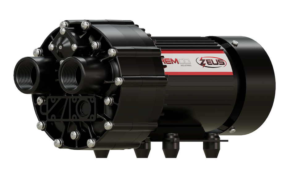 Remco's Zeus 14GPM, 12VDC, 60PSI, bypass pump is the ultimate electric driven diaphragm pump, taking performance to the next level. Combining its ultra efficient electric motor with state of the art pump head design, Zeus is ready for the most extreme applications. Remco has combined our Professional Grade durability, engineering, and expertise is developing the Zeus pump.