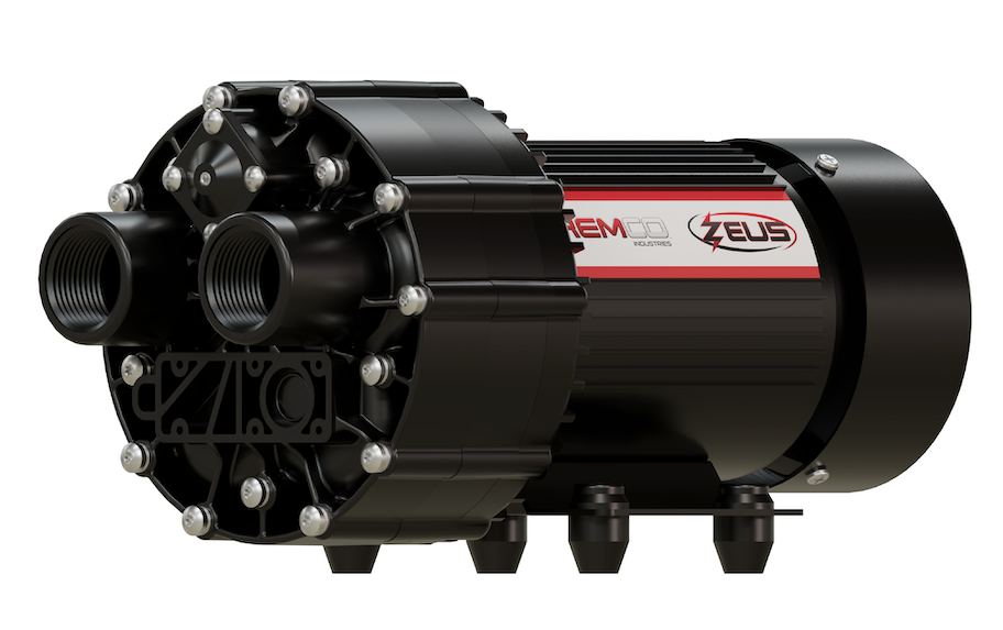Remco's Zeus 14GPM, 24VDC, 60PSI, bypass pump is the ultimate electric driven diaphragm pump, taking performance to the next level. Combining its ultra efficient electric motor with state of the art pump head design, Zeus is ready for the most extreme applications. Remco has combined our Professional Grade durability, engineering, and expertise is developing the Zeus pump.Â