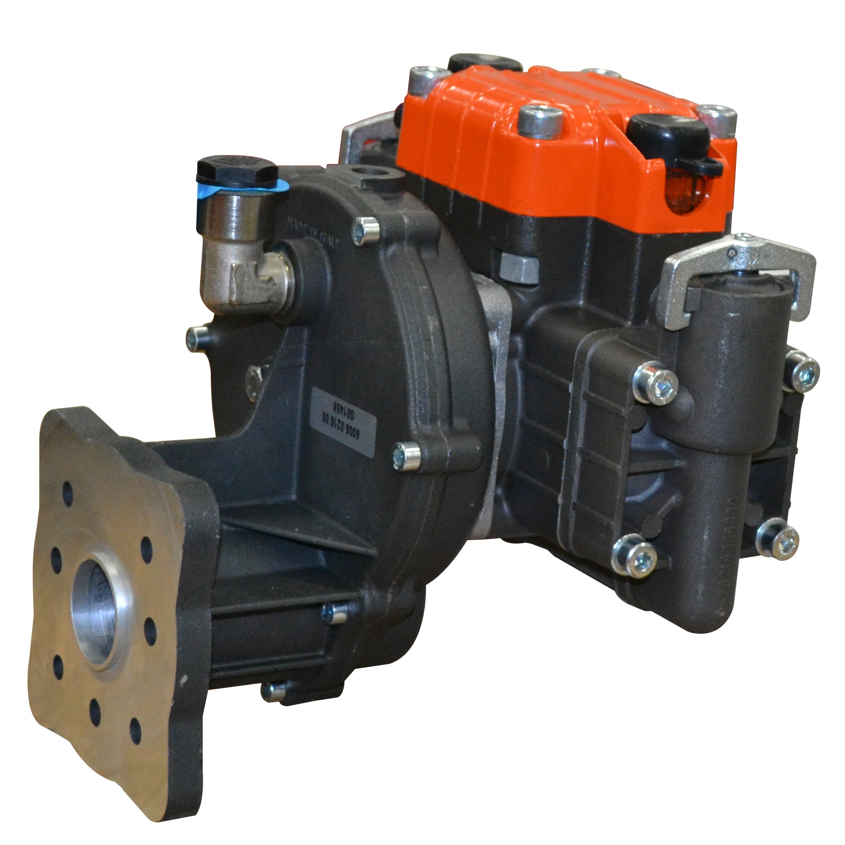 Twin diaphragm pump with gear reduction for gas engines with 3/4" shaft. Includes pressure regulator with manual dump lever and mounting rails. Medium pressure internal manifold pumps with anodized aluminum heads for less leak points. Great for lawn care, pest control, agriculture, insulation and heavy duty industrial applications.