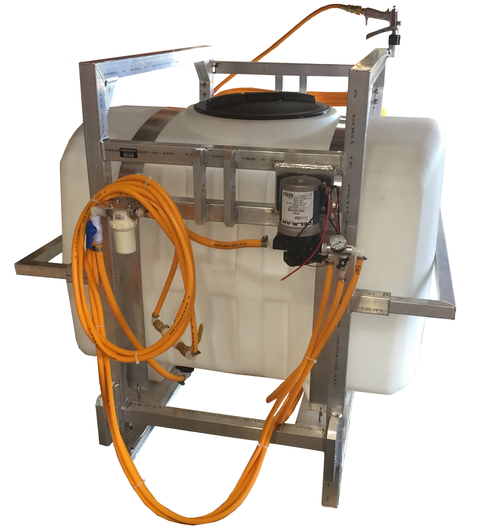 - 3-point hitch sprayer unit can easily spray up to 25' through the spray gun