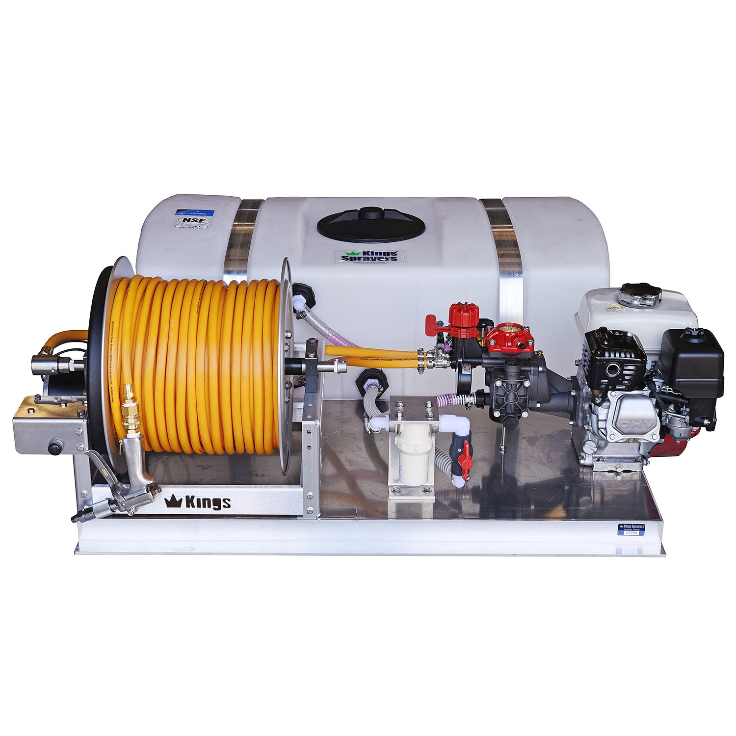 Kings Sprayers 50 Gallon Low Profile Skid Sprayer with 6 gpm Diaphragm Pump and Electric Hose Reel